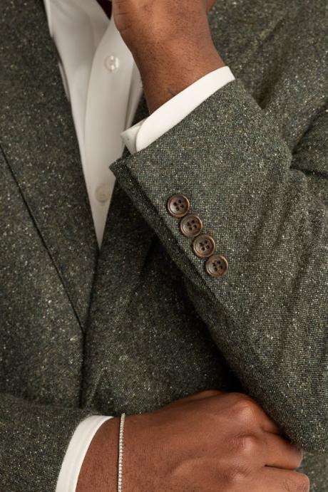 Model is 6’2″ with a 40″ chest, and is wearing a 40R suit jacket.