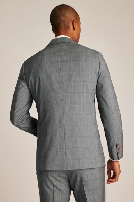 Model is 6’2″ with a 40″ chest, and is wearing a 40R suit jacket.